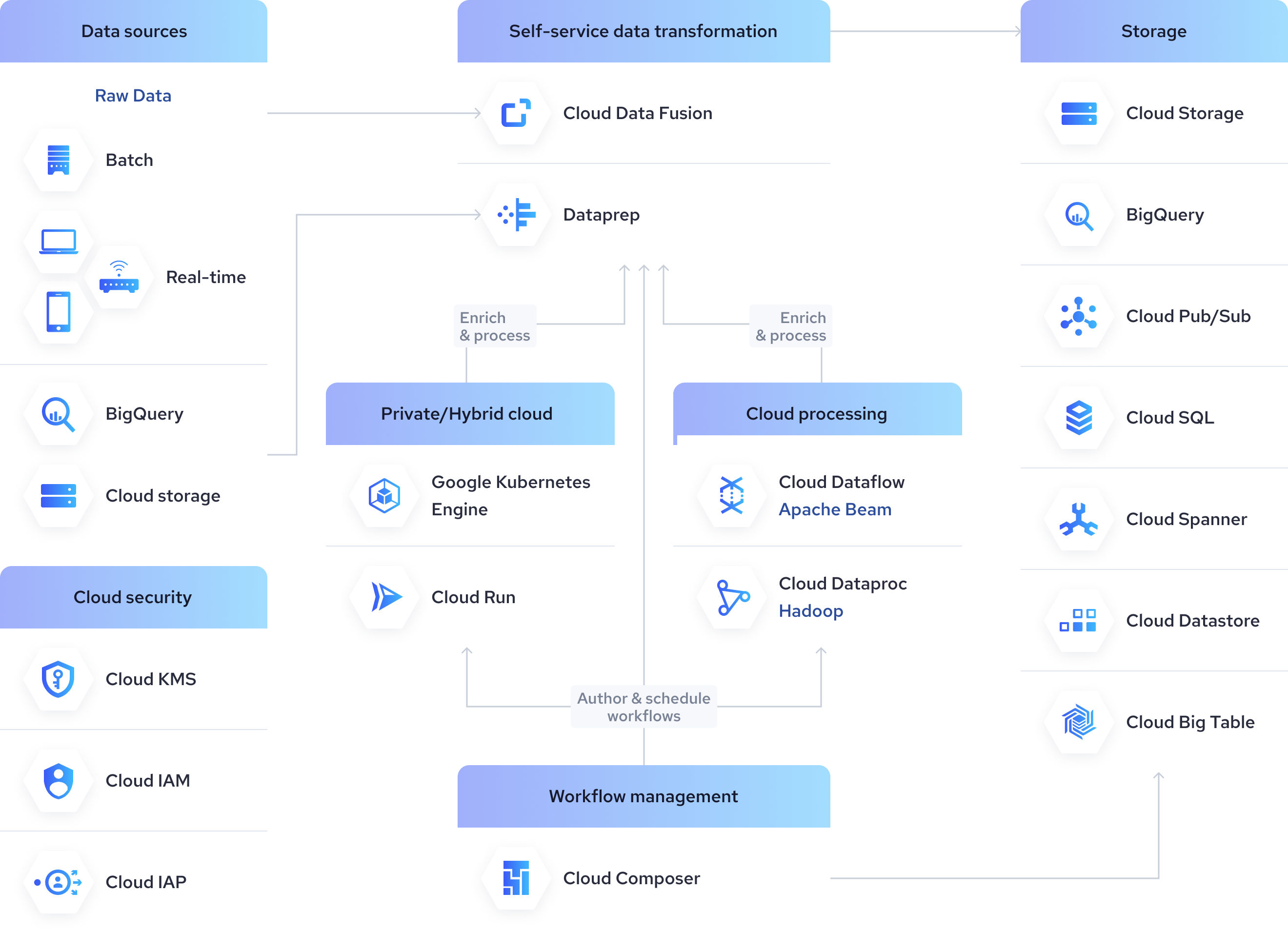 One example of Google’s growing ecosystem of innovative cloud apps is Cloud Data Fusion, launched in 2019. It is a fully managed, cloud-native data integration service that helps users build and manage ETL/ELT data pipelines via an intuitive graphical UI that almost totally eliminates the need for coding. CyberVision has already used this new tool for a large-scale Telecom Big Data project and it proved to be of great help for data engineers, business analysts, and project managers.